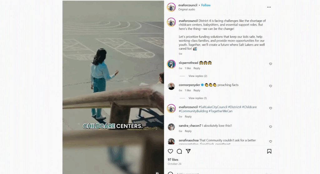 We worked with Eva Lopez, who ran for City Council in Salt Lake City against an incumbent. She didn’t rely on generic political ads or tired campaign tactics.