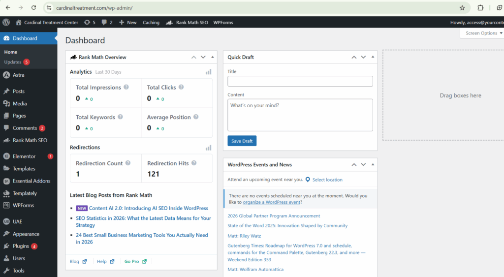 The site needs rewritten titles and descriptions. Schema should be added for reviews, FAQs, and the business profile.