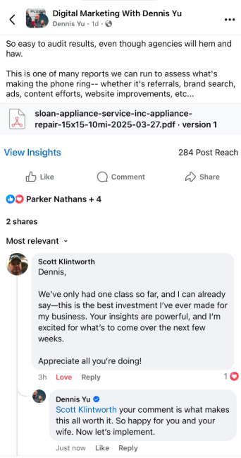 I have friends Chris and Eric Martinez (founders of Dynamic Fit Pros) who coach personal trainers. They’ve started implementing AI agents that handle marketing, website updates, ad management, and client success story collection for their clients. They’ve essentially added micro-agency services to their coaching.