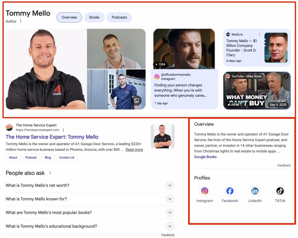 You’ve seen this with celebrities. Search a musician or actor and you’ll get a panel with photos, bio details, social profiles, and related info. The difference is: contractors assume that’s only for famous people.