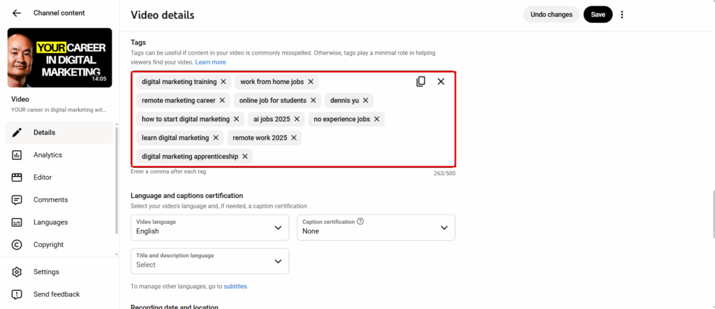 Tags shouldn’t be random; they should support the video’s core topic.