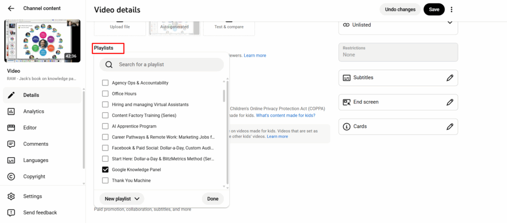 Step 6: Add the video to the correct playlists